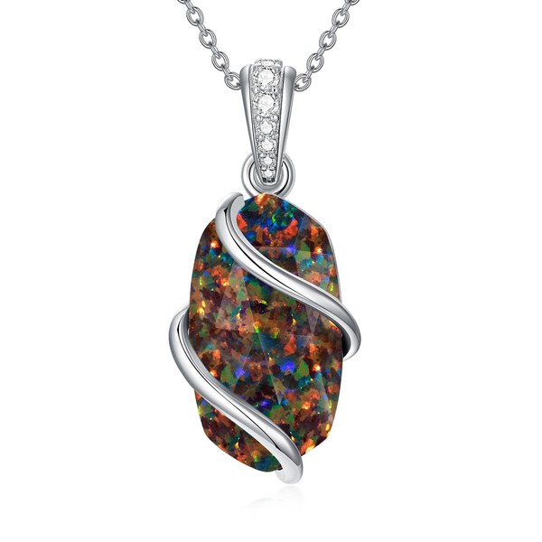 HPQQ Black Opal Necklace for Women Sterling Silver Black Opal Stone Pendant Necklace Jewelry Valentines Day Anniversary Birthday Gifts for Women Her Girlfriend