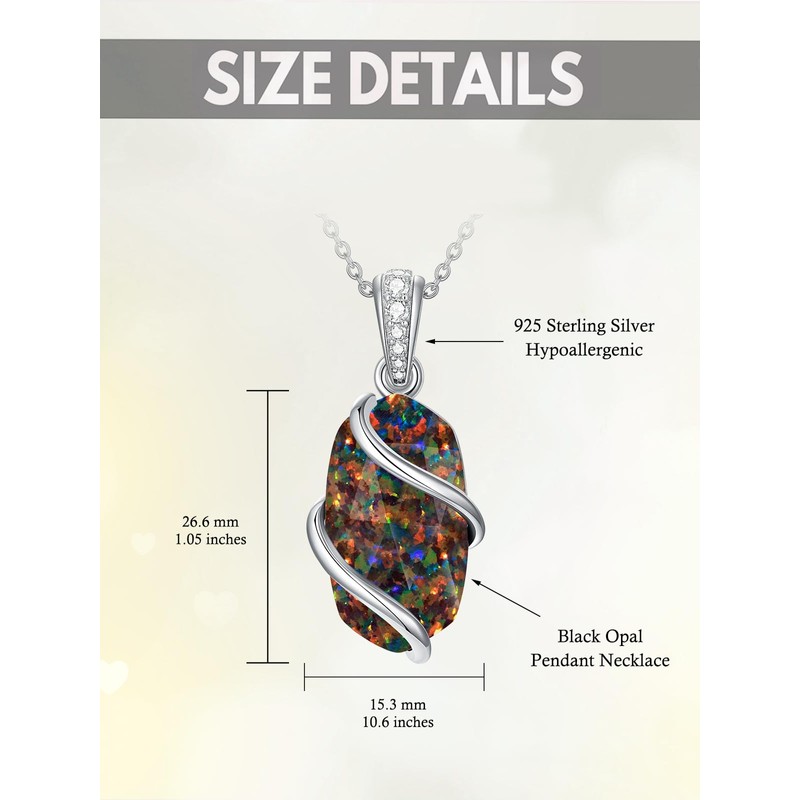 - 【Black Opal Necklace】Black opal necklace made of 925 sterling silver. Lead and nickel free and suitable for those with sensitive skin. Pendant measures 1.15*0.6 inches on an 18+2 inch chain.