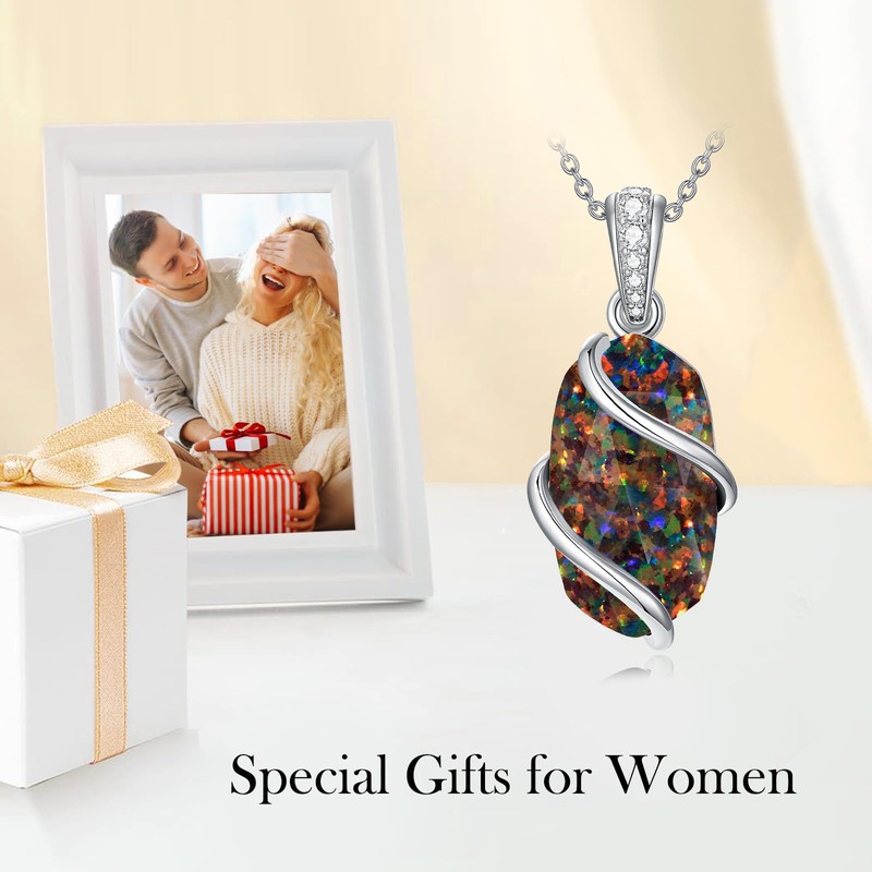 - 【Perfect Display】This opal stone necklace is suitable for daily wear. At the same time, it is also perfect for special occasions. Whether it's a date or an important celebration, this black opal jewelry will bring you a unique charm and make you the center of attention.