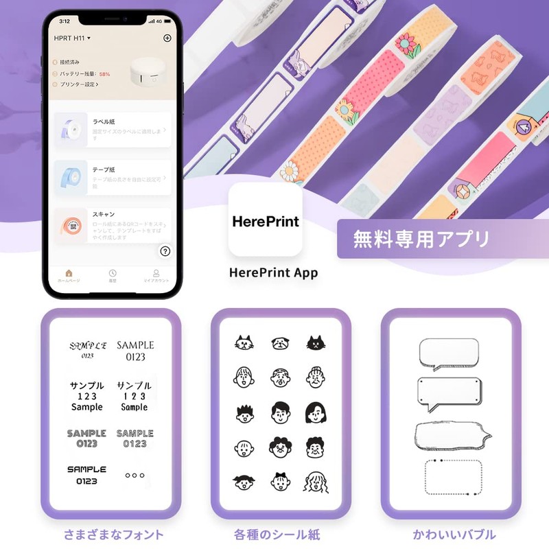 • (Free App) The HPRT-H11 label printer has a dedicated app that is "HerePrint", so you can download it free of charge. It can be printed horizontally or vertically, and can be used for a variety of decorations, bubbles, and fonts. It also has a doodle function. It also comes with an operating guide so anyone can easily use the label maker