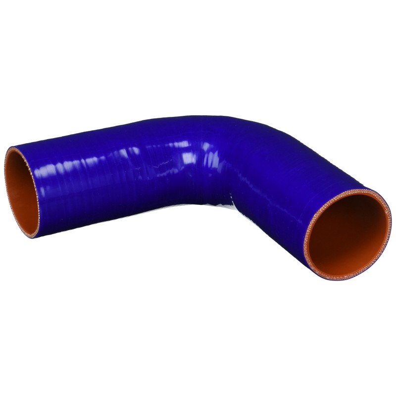 HPS 2-3/4 inch (70 millimeter) 4-ply Reinforced High Temperature 90 Degree Elbow Coupler Silicone Hose Blue features 4-ply reinforced and knitted premium polyester fabric with high temperature silicone rubber, for which meet or exceed SAEJ20 Standard and is engineered for extreme temperature and various pressure ranges where high performance levels are required. HPS Silicone Hose is commonly used for joining two hard pipes while reducing the possibility of connections coming apart or having your hard pipes or other equipment break. HPS silicone hoses are used by professionals in industries such as high performance racing vehicles, commercial truck and bus, Marine, agricultural and off highway vehicles, turbo diesel, food and beverage, and general manufacturing industries. Temperature Range: - 65 degree Fahrenheit to + 350 degree Fahrenheit (177 degree Celsius). Silicone hose is compatible with water or anti-freeze such as coolant. Silicone hose is not compatible with fuel or oil.