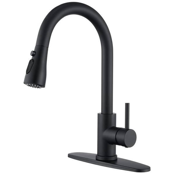 HPUFKOT Kitchen Faucet with Pull Down Sprayer Multitask Mode Single Handle High Arc Pull Out Kitchen Sink Faucet Offers Efficient Cleaning for RV (Black)