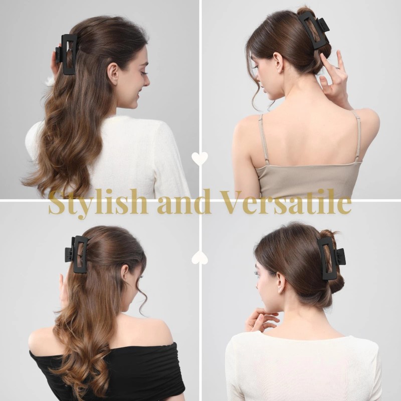 Hq-Site 12 Pcs Black Large Square Hair Claw Clips for Women, 4.3-Inch Matte