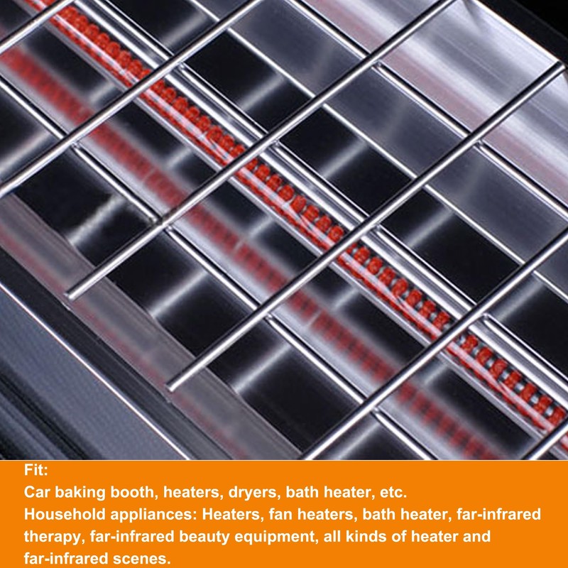 - [Stable Electrical Performance]After being powered on, the carbon fiber quartz electric heating tube maintains a stable power within a certain tolerance range during frequent start-up, shutdown, and long-term continuous operation, without generating any instantaneous power shock. So this car baking lamp heater is firm, stable and with long service life