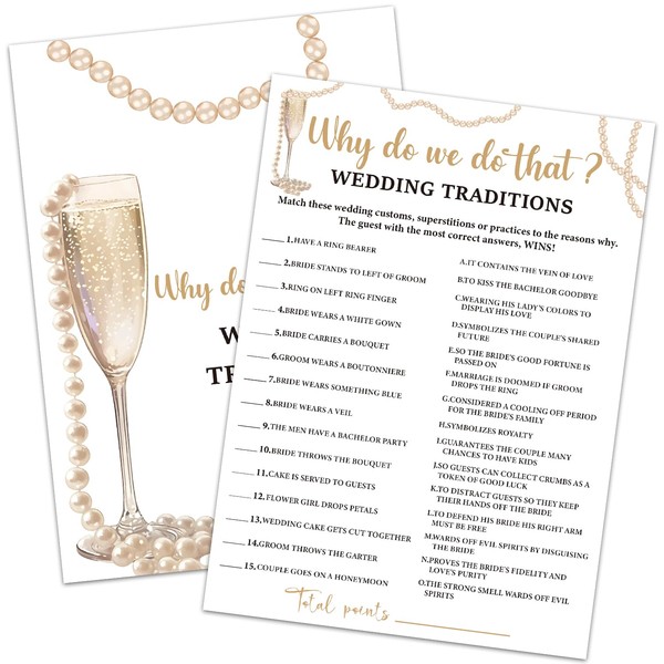 HQLOW 30 Guests Bridal Shower Games - Wedding Traditions Game, Bridal Shower for Engagement Wedding Party, Wedding Shower Games, Bridal Games for Showers (Gold Champagne) -002