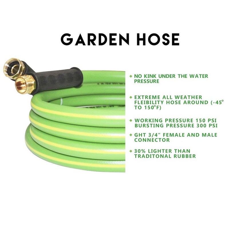 - No KINK UNDER THE WATER PRESSURE: Water pressure exceed 50 Psi this garden hose lay flat with no memory Working pressure 150 Psi , bursting pressure 300 psi