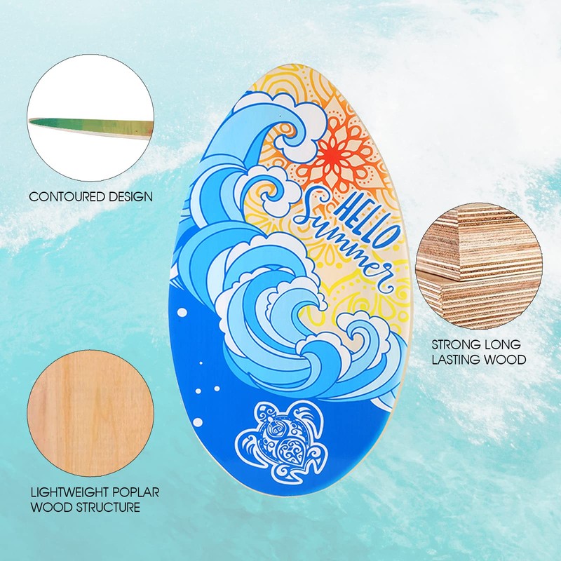 - [ HIGH-QUALITY SKIMBOARD ] Skimboard is made of high quality wood, sturdy highly resilient and lightweight type of wood. It also comes with unique and colorful designs to choose from to match your personality