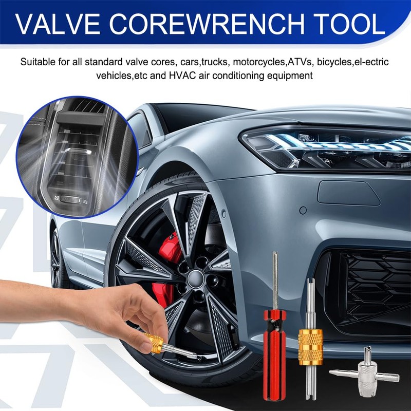 - Wide Application:This tire valve tool is suitable for most standard valve cores, such as trucks, cars, bicycles, motorcycles, caravans, etc. valve core replacement and repair, and these tools are compact in size, easy to store and carry, you can access them at any time