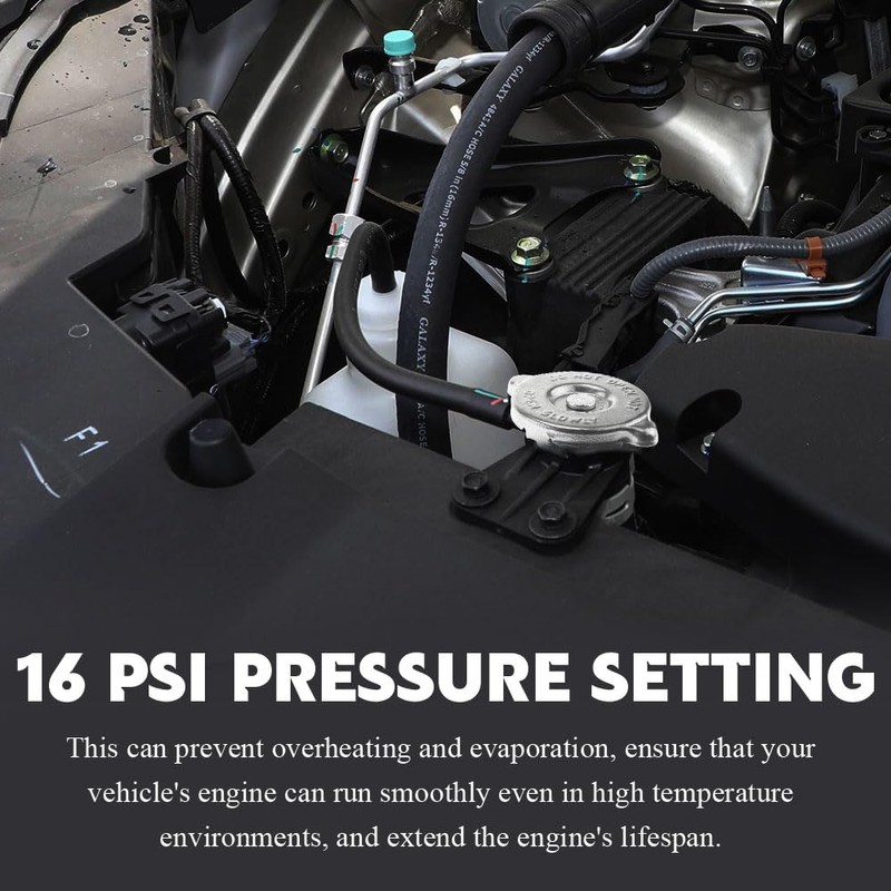 - Product Function:This radiator reservoir cap has a good sealing, 16 PSI pressure setting can maintain a normal pressure level in the system, thus effectively preventing coolant leakage or engine overheating, and blocking foreign objects from entering the interior, prolonging the life of the engine