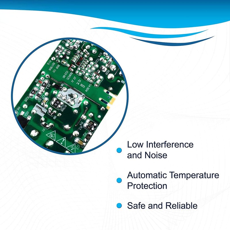 - Automatic Thermal cut-off; Short circuit and Over Voltage protection; Low Interference & Noise;