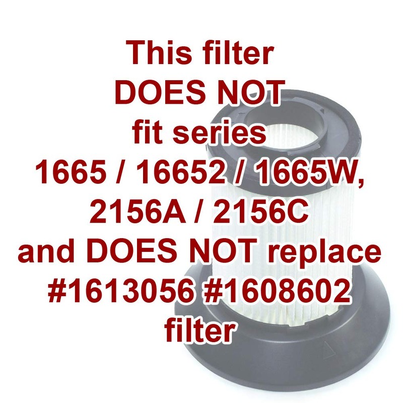 HQRP filter can eliminate separate particles of Embryos, Tobacco smoke, Smoke of metal oxide, Swirl on th carrying particles, Carbon black, Oil smoke, Bacterium, Spore, Cement dust, Particles creating stain or dust sedimentation, Pollen, Fog, etc. The dirt cup filters can be reached by removing the dirt cup from the vacuum, grasping the handle on the bottom of the dirt cup filter assembly and turning counter clockwise to unlock.