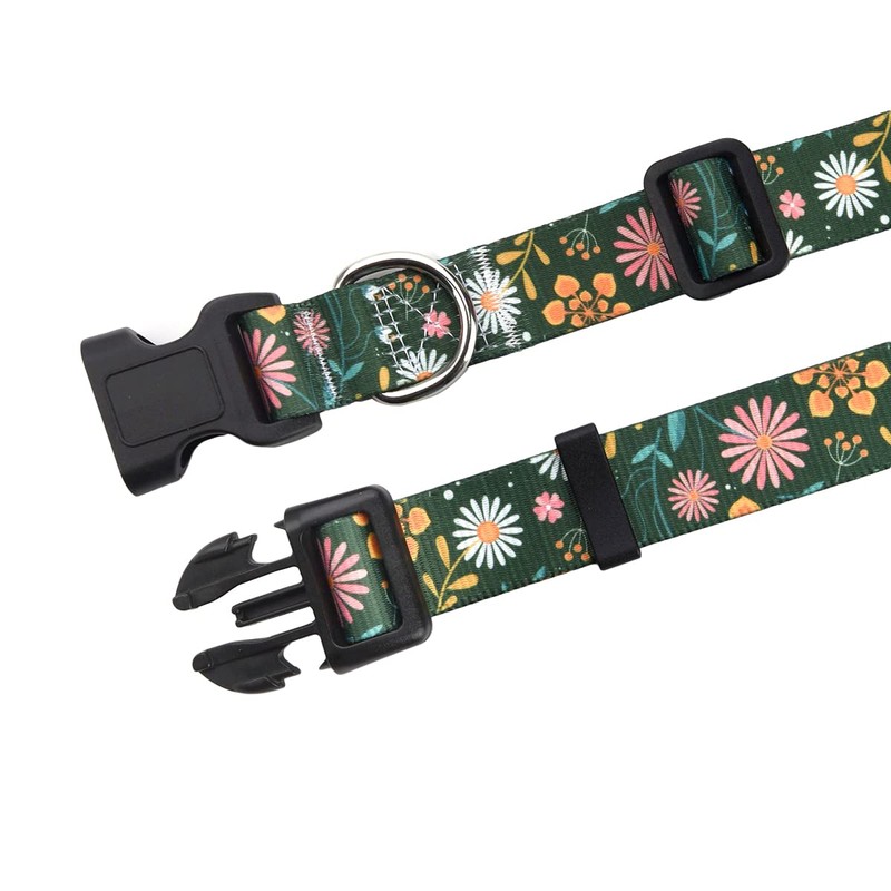 HQYDDMI Dog Collar, Soft & Comfortable Nylon Dog Collar, Adjustable for Cats, Puppies, Small, Medium and Large Dogs, with Floral Pattern (Green Flowers, S)
