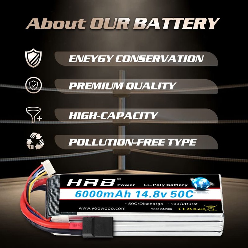 HRB 14.8V 6000mAh 50C TR Lipo Battery Compatible with RC Car RC Plane RC Truck RC Boat (2 Packs)
