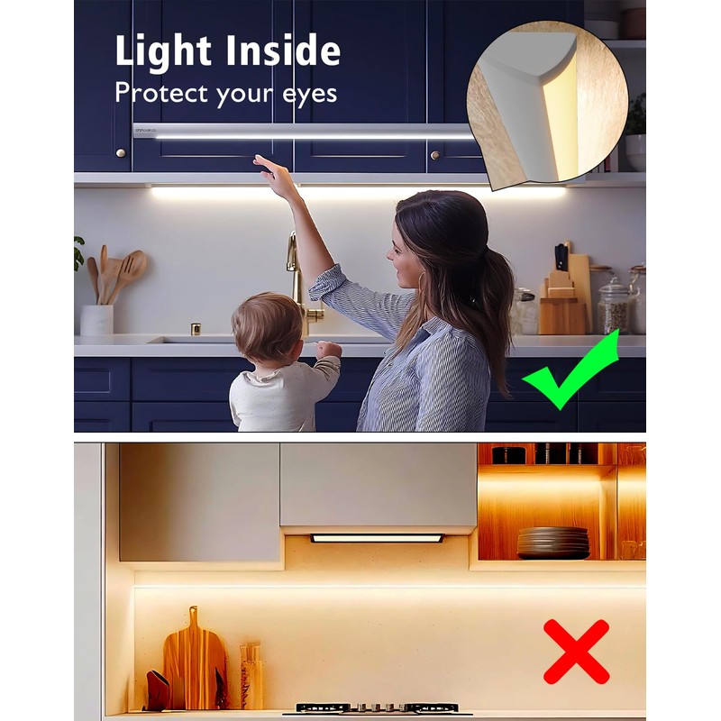 - 2. Downward 120° Beam Angle Anti-Glare Lighting--- Engineered with downward-focused LEDs and a frosted diffuser layer, this lighting solution provides illumination for shelves while avoiding direct exposure that could cause eye strain. It is ideally suited for applications such as kitchen pantries and bedside storage areas