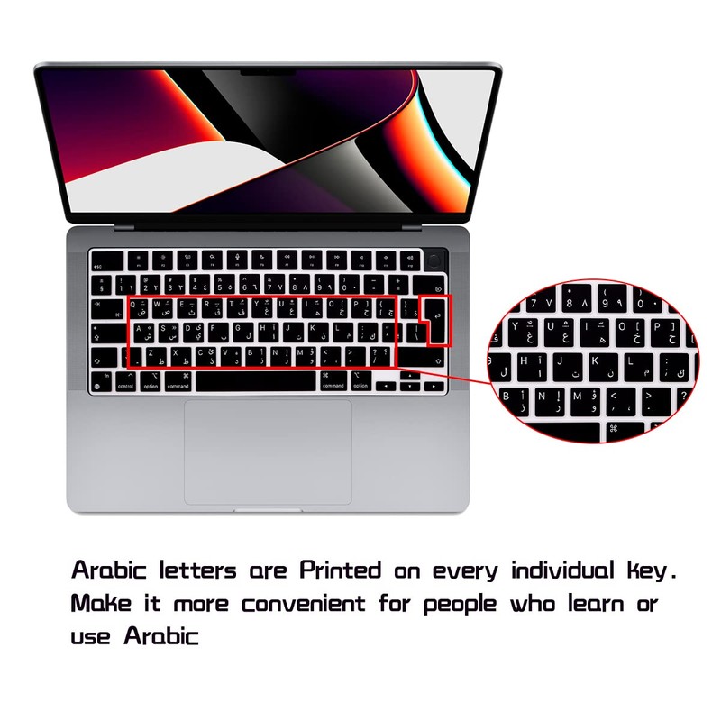 • 2)Extra slim silicone skin,the arabic keywords are printed on the keyboard cover,made it easier for typing