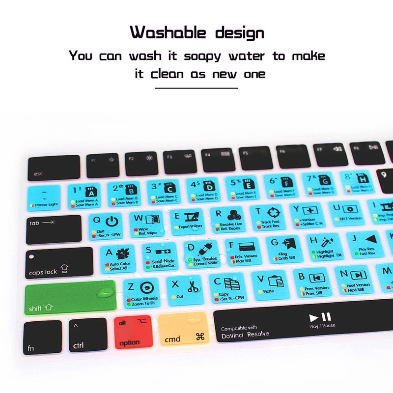 HRH Davinci Resolve Functional Shortcut Hotkey Keyboard Cover Silicone Skin for Magic Wireless Keyboard MLA22LL/A (A1644,2015 Released) with US Layout