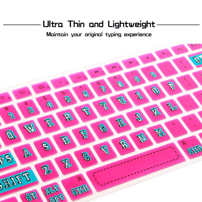 - 4) Extra slim silicone skin, made it easier for typing The keywords are printed on the keyboard cover