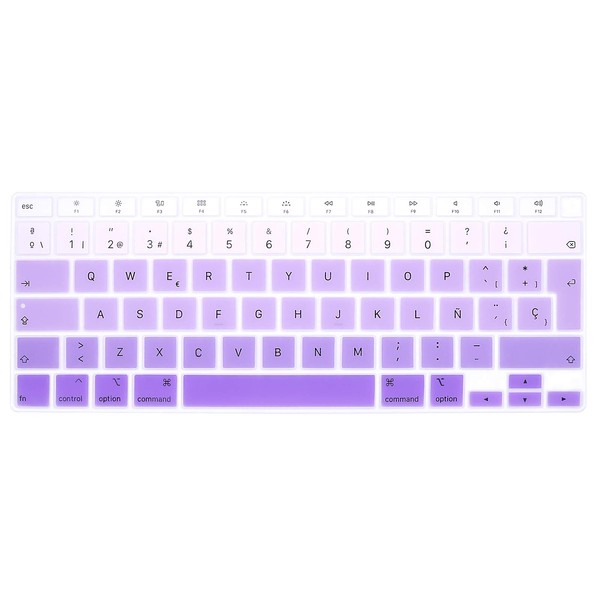 HRH Spanish Language ESP Skin Silicone Keyboard Cover for MacBook Air 13 Inch 2020 with Touch ID (MODLE A2179 and A2337 M1 Chip,US Layout) Keyboard Accessories Protector-Ombre Purple