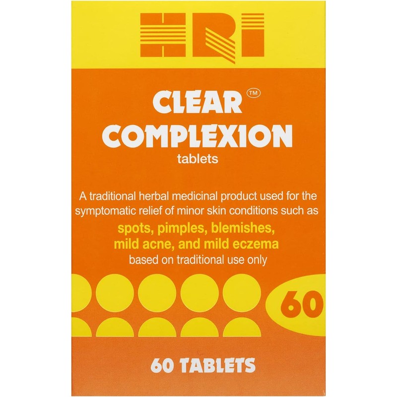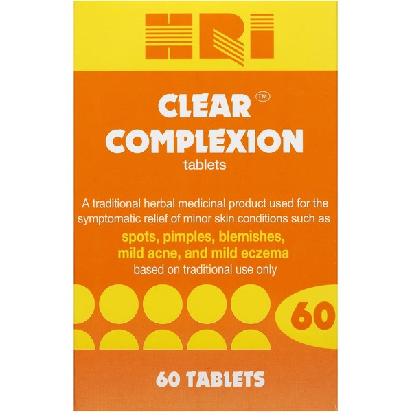 HRI Clear Complexion 60 Tablets - for Symptomatic Relief of Minor Skin Conditions Such as Spots, Pimples, Blemishes, Mild Acne, Mild Eczema. 1 Pack