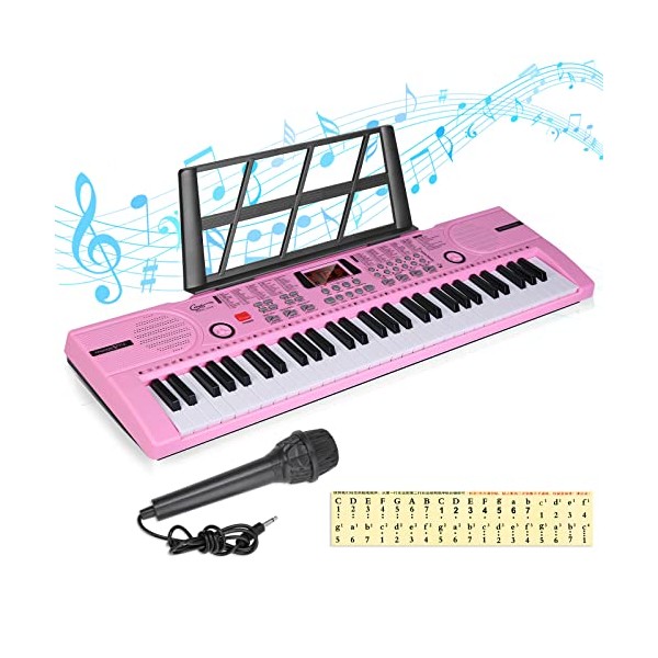 Hricane Kids Piano Keyboard, 61 Keys Beginner Electronic Keyboard Portable Digital Music Keyboard, Early Education Music Instrument with Microphone & Music Sheet Stand, Best Gift for Boy & Girl