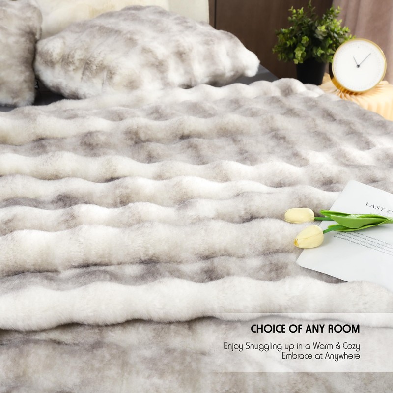 HRLMP Faux Rabbit Fur Throw Blanket for Couch 1000GSM Smooth Fuzzy Plush Warm Soft Bubble Blanket for Bed, Fluffy Thick Cozy Reversible Throw for Sofa Chair Living Room (Grayish White, Twin-60"x80")