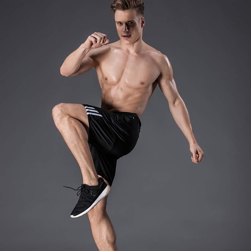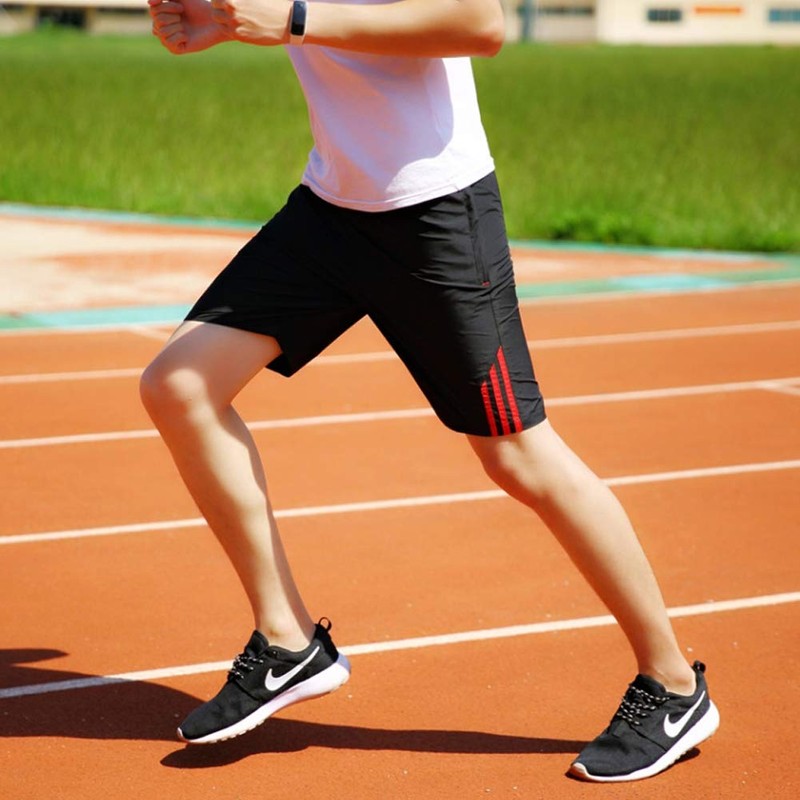 HRUI Men's Four Seasons Running Shorts, Sweat Absorbent, Quick Drying Fitness Shorts, Adjustable, Sportswear, Set of 2, black red,