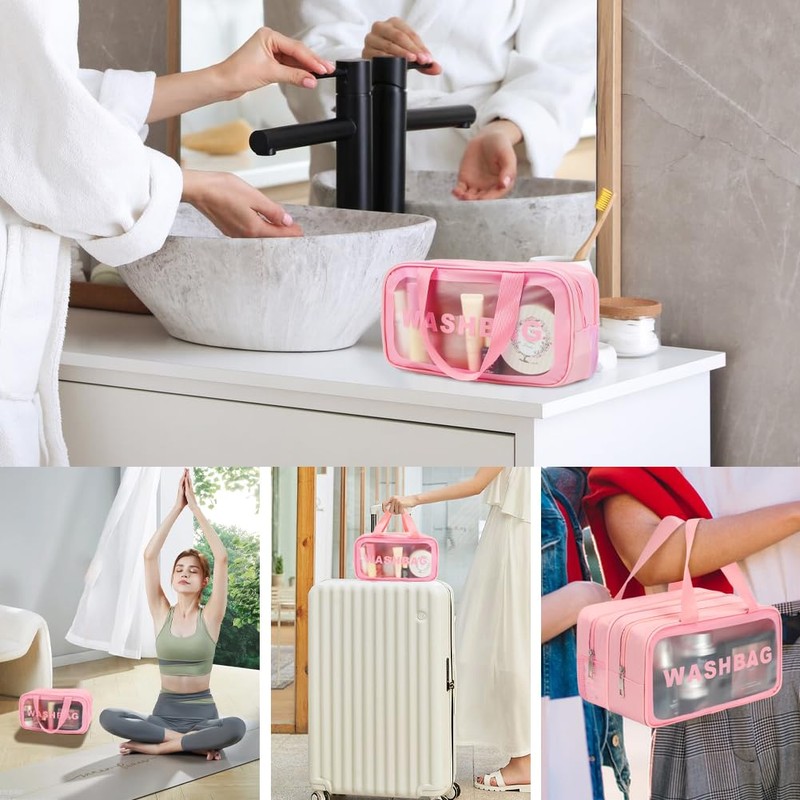 HRX Package Wet and Dry Double Layer Travel Toiletry Bag, Transparent Sasserproof Cosmetic Bag, Large Capacity Organiser, Travel Accessories (Pink, S)