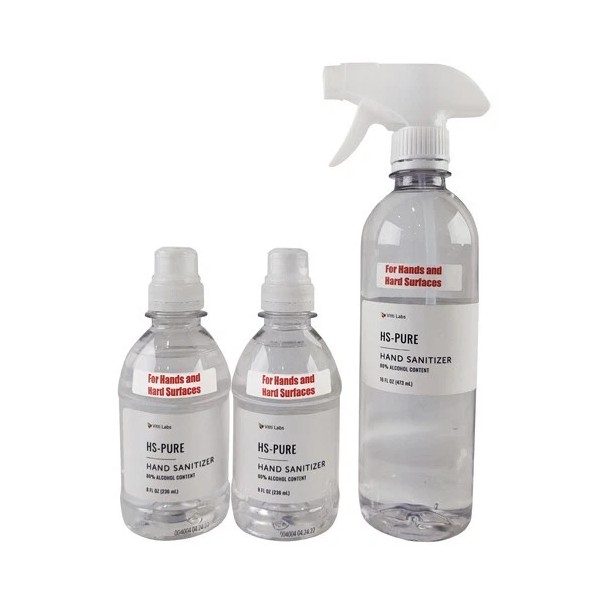 The HS Pure Spray Disinfectant & Sanitizer Kit is a **high-quality, FDA and WHO-approved solution** for sanitizing both hands and hard surfaces. With an **80% alcohol** formula, this kit provides powerful germ-killing protection while leaving your hands clean and soft. Its fast-evaporating formula eliminates the need for wiping, making disinfection quick and hassle-free. Packaged in durable PET plastic bottles, this kit ensures long-lasting use without leaks, cracks, or peeling.