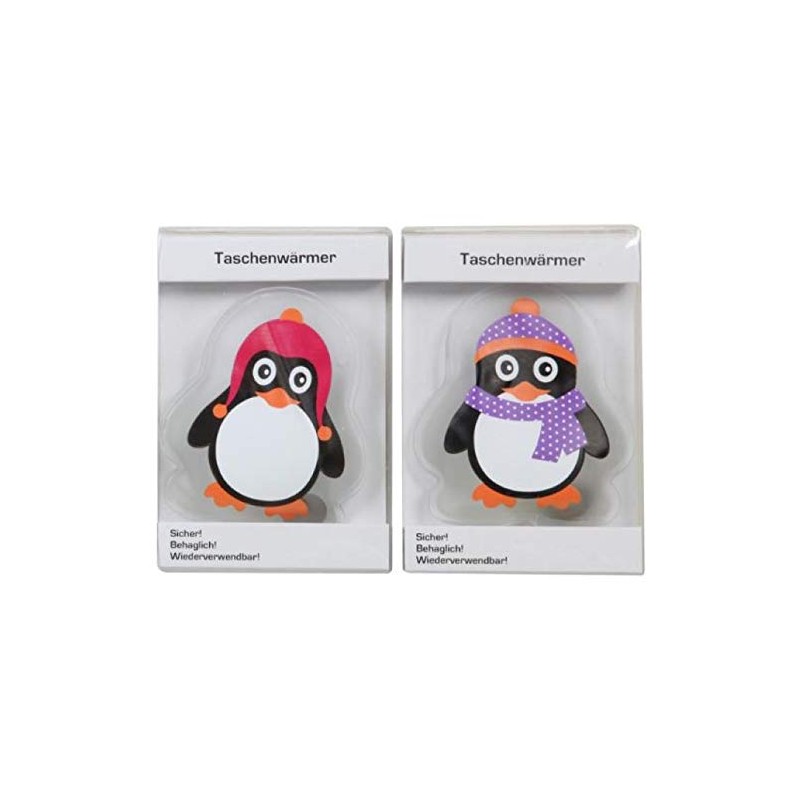 Hs24store Pack of 2 Pocket Warmers Hand Warmers with Penguin Motif Pink / Purple