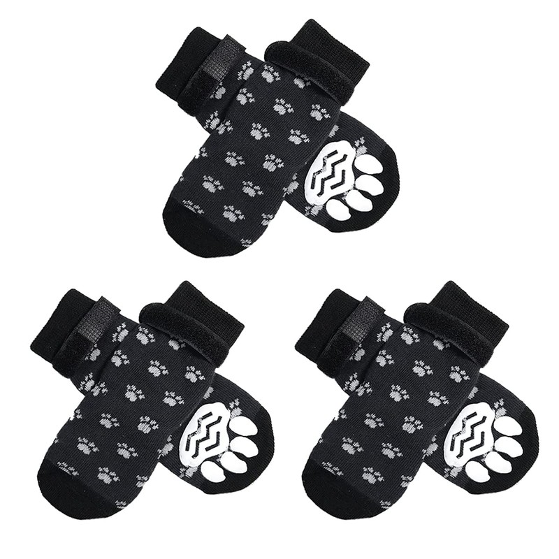 Hsathoac Anti Slip Dog Socks with Adjustable Straps 3 Pairs, Double Side Pet Paw Protect for Indoor Wear, Grips Traction Control On Indoor Hardwood Floor, Non-Skid Design for Small Medium Dogs (S)