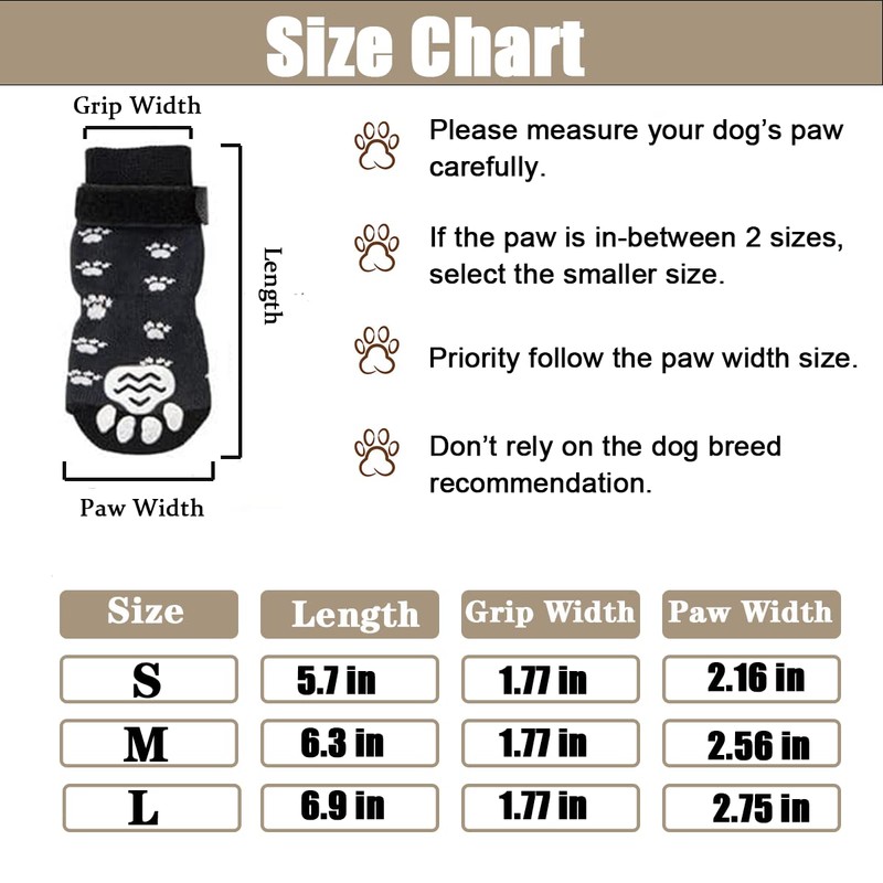 - 🐾 Perfect Fit: Our dog socks come in 3 sizes with elastic fabric for a snug, comfortable fit. Measure your pet's paws carefully and choose the right size for optimal performance. If it is between the two sizes, it's better to choose the smaller size. Because our pet paw protector socks are fabrics with elasticity.