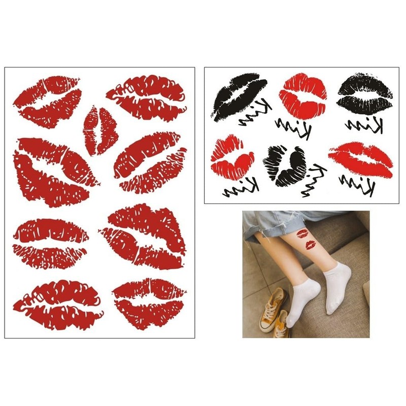 - 2 sheets of temporary lips kiss tattoo. Size: approx. 15 x 10 cm.