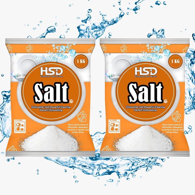 • WATER SOFTENING: HSD Dishwasher Salt, Water Softener Limescale Prevention 1 kg Bag, dishwasher salt is used to soften hard water, which contains high levels of calcium and magnesium ions. When hard water is used in a dishwasher, it can lead to limescale deposits on dishes and the dishwasher's internal components.