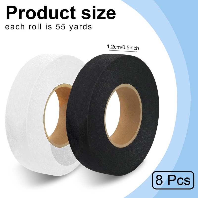 HSDJLXZ 8 Rolls 1/2 Inch x 55 Yards Iron Hemming Tape for Pants, Hem Tape Iron on, Iron Tape for Hemming Curtain, Pants, Clothes