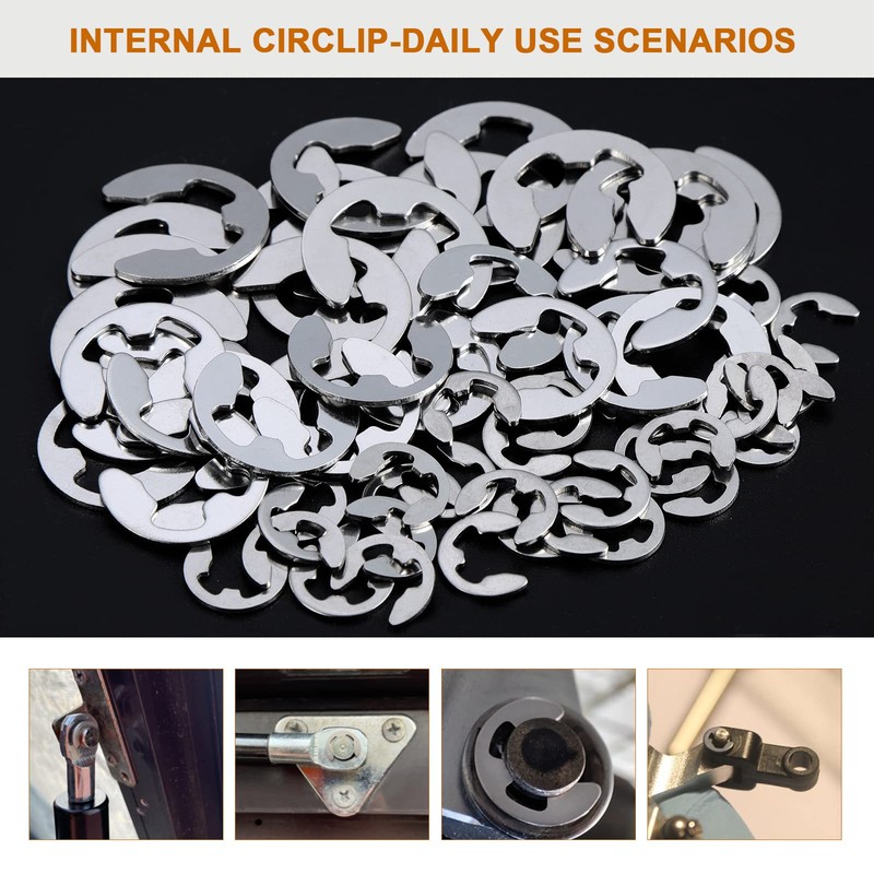 - High quality: E-clips circlips made of 304 stainless steel, with excellent rust resistance properties, holds strong and durable, suitable for indoor and outdoor use.