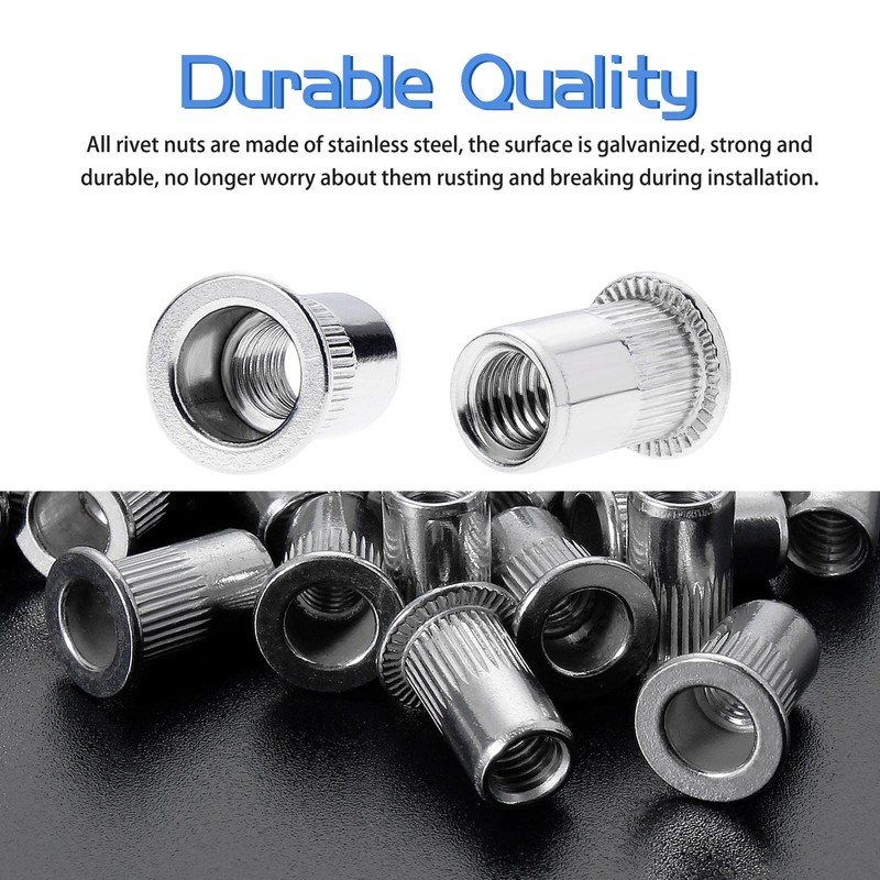 - ✔️【304 Stainless Steel Rivet nut】:Our screws nuts are made of high-quality 304 stainless steel, they have a good strength of extension, corrosion resistance, superior rust resistance and excellent oxidation resistance, which can ensure long time using.