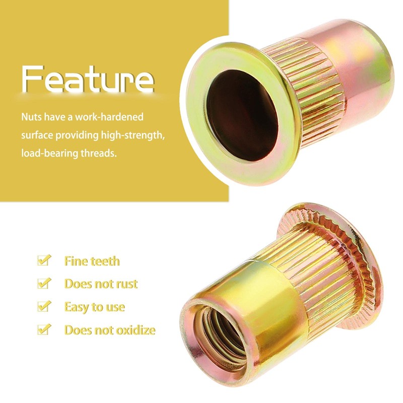 HSeaMall M8 Plated Carbon Steel Rivet Nut M8 Threaded Insert Flat Head Threaded Rivet Nutsert Cap Kits Rivnut Tool50Pack