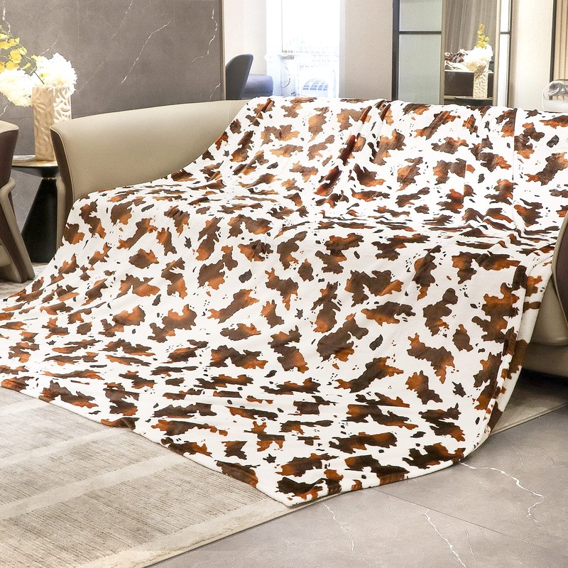 • SOFT COW PRINT BLANKET AND THROWS-large cow print blanket are made of flannel fleece blanket and cow print fabric.king size cow print blanket is a more soft throw blanket for bed and warm blankets for winter.double-faced big cow print blanket effect turns this western throw blankets into a cute cow print blanket.soft blankets and throws also are suitable as a indoor outdoor blanket also can be all season blanket,such as fall throw blanket,air conditioner blanket.