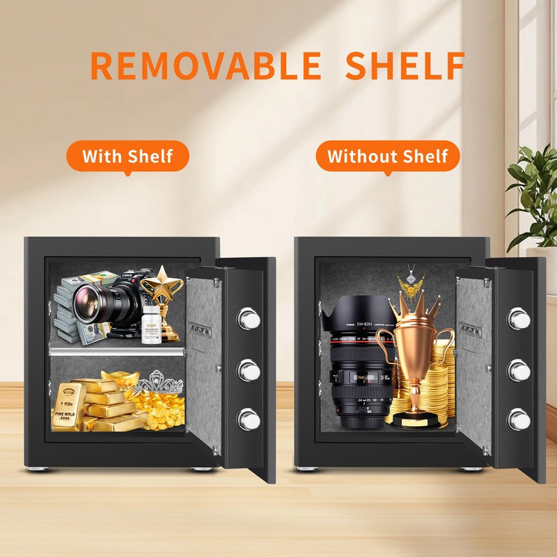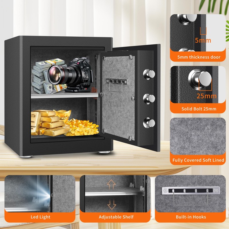 • 【UPGRADED ALARM SYSTEM】As a multifunctional security safe for home, office and hotel use, we have been focusing on versatility and continuous new upgrades, so it is equipped with a dual alarm function,Three consecutive wrong passwords or five wrong passwords will trigger an alarm for 20 seconds. Press the * key to turn on the alarm function. Severe vibration will also trigger the alarm function.