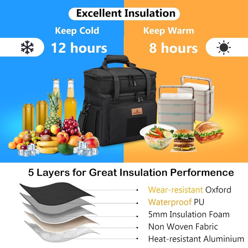 - Excellent Insulation Performance: 6mm thick insulation foam and thick food-grade PEVA liner help keep your food hot and cold for more than 8 hours. Foods that need heat preservation and cold preservation can be stored separately from the upper and bottom compartment.