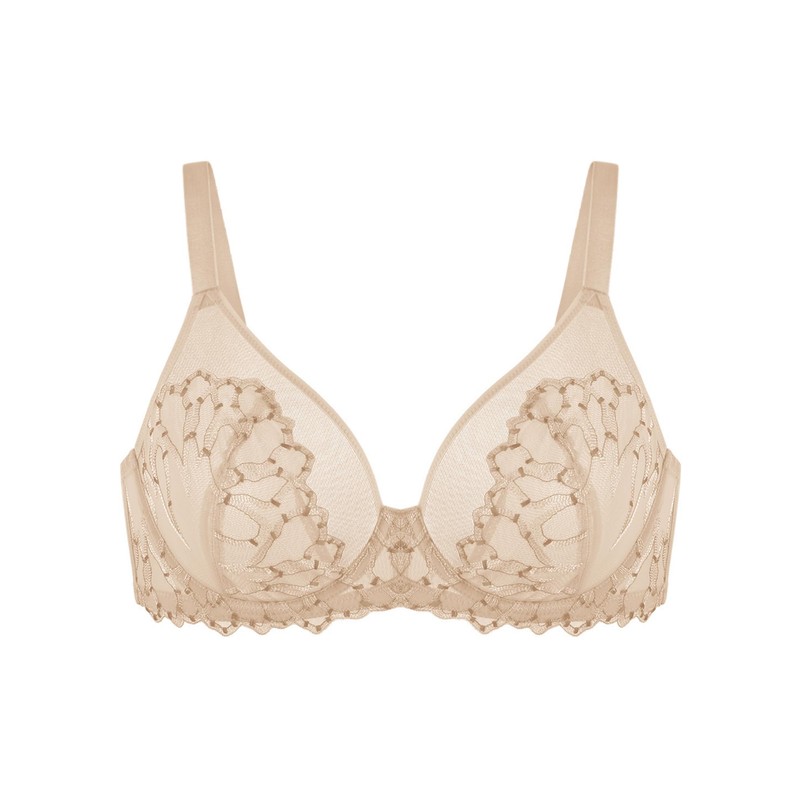 2. Full Coverage Bras : High-cut cups, adjustable straps, and a U-back ensure secure, smoothing support. Delicate floral embroidery adds elegance, while the centering effect lifts and contours.