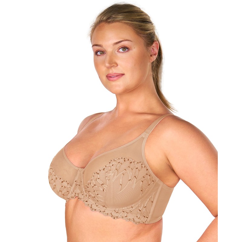 HSIA Minimizer Bras for Women, Embroidered Full Coverage Bra Unlined Bras with Underwire for Heavy Breasts, Warm Beige 34DDD