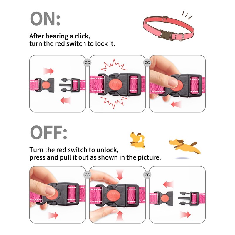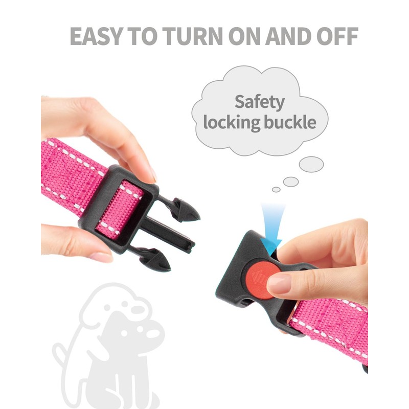 • Safety Lock: The quick release buckle comes with a locking clasp to bring security to your training. Slide it down to lock and up to open. When you lock it, the buckle won't accidentally open, keeping your dog safe