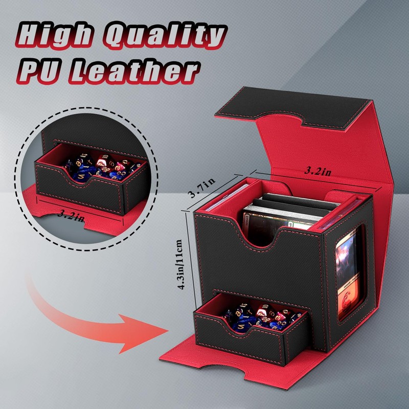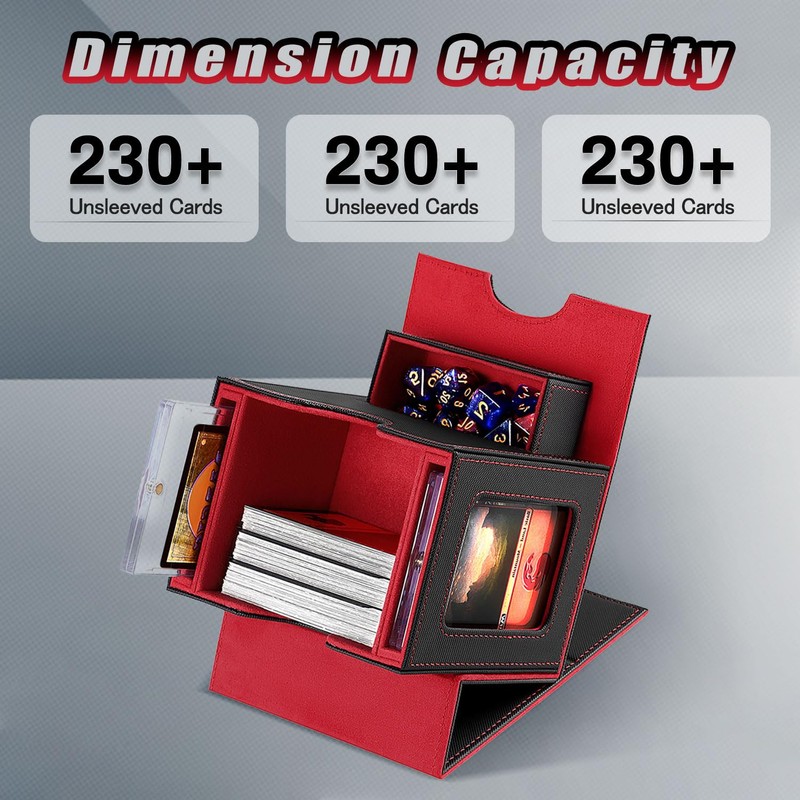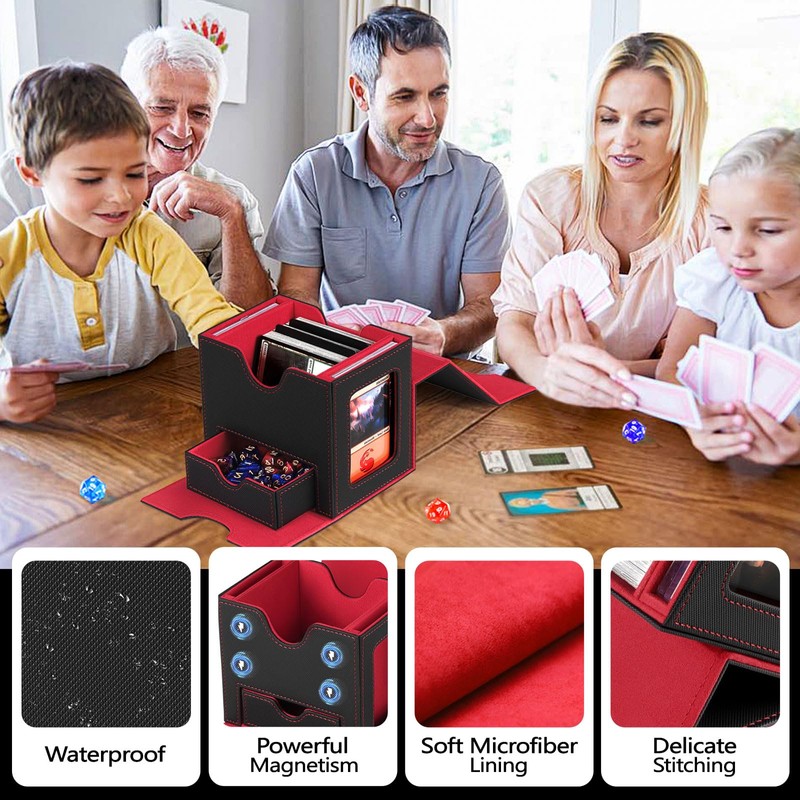 HSMH Card Deck Box for MTG with Commander Display Fits 100 Double-Sleeved Cards, Deck Case for EDH/TCG/Sports Cards with 2 Magnetic Card Holders (Black Red)