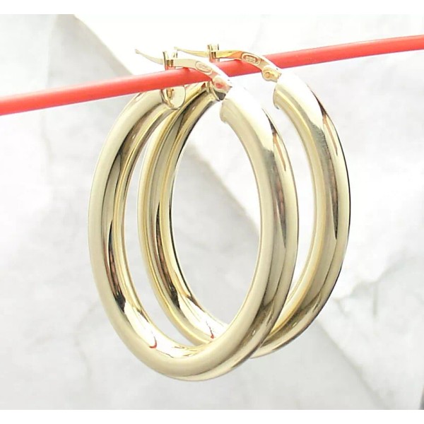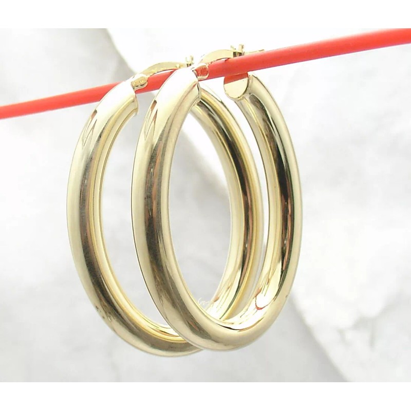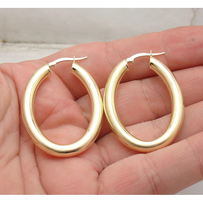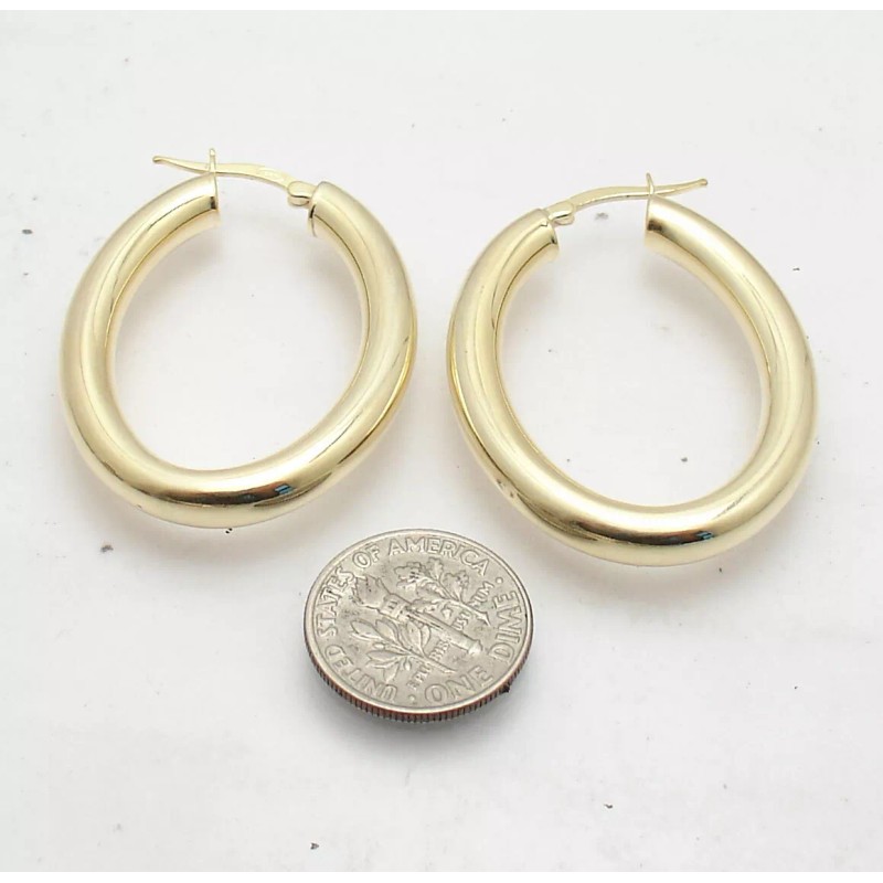 HSN 1.5" Technibond Plain Oval Hoop Earrings 14K Yellow Gold Plated Silver 5mm