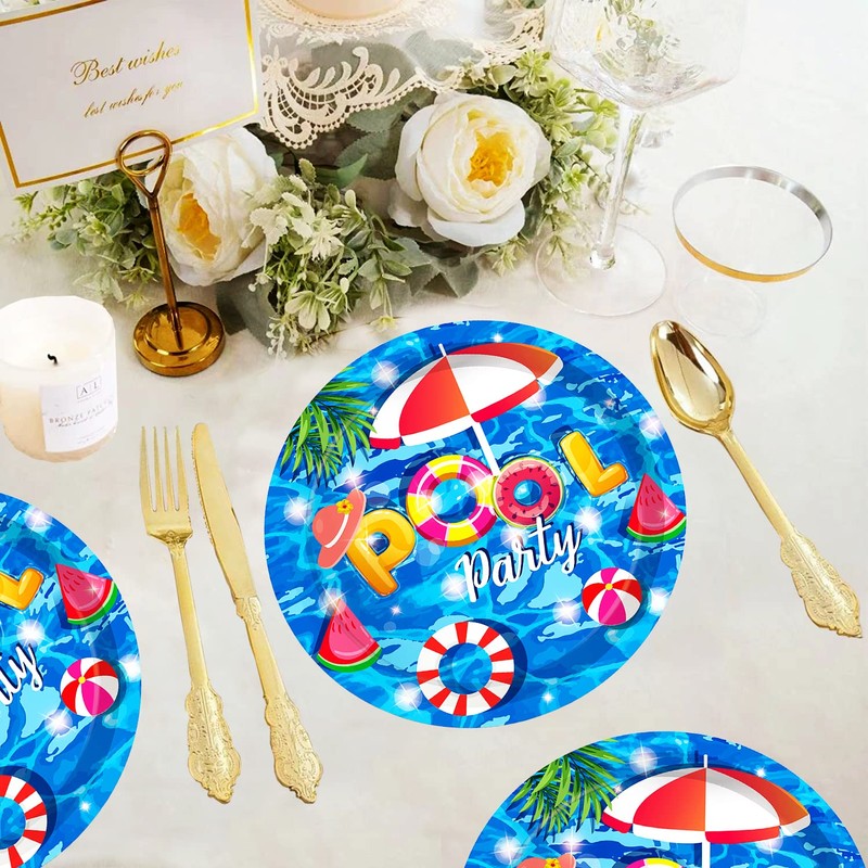 HSPAIDYP 50 Pcs Pool Party Tableware Plates,Pool Party Supplies Beach Party S...