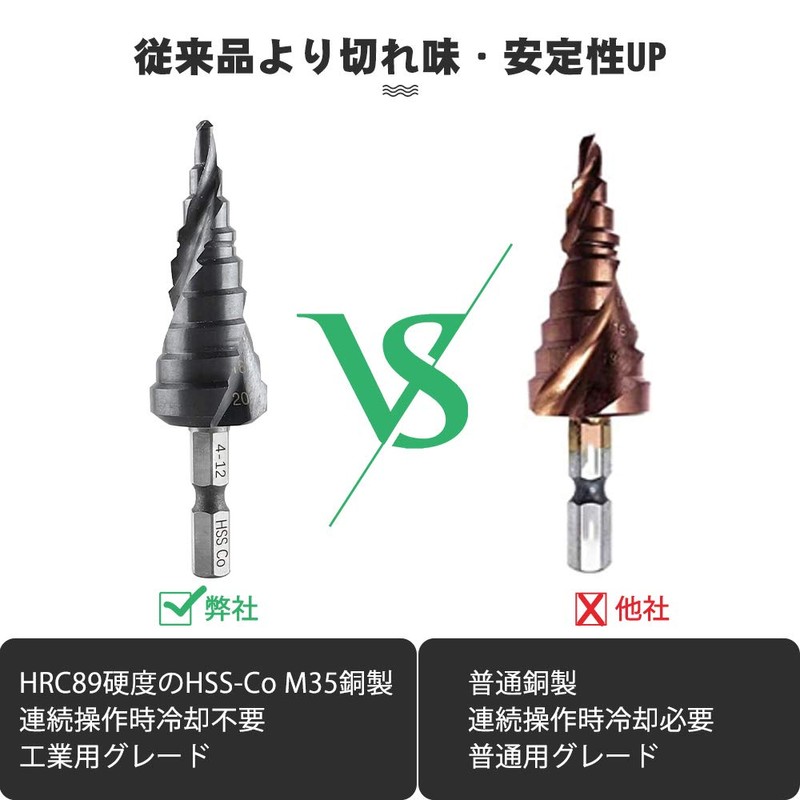 - Scope of application: The step drill extends the holes in order from small holes to large holes, so you can modify the enlargement of multiple sizes and holes. In addition, the shape of the shaft is hexagonal shaft, so it can be used with impact drivers, electric drills, and charging drills