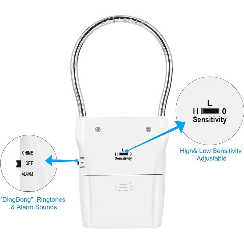 - The three sensitivities can be adjusted to the environment and prevent accidental leakage of the alarm. With a bell key, it can be used as a simple doorbell.