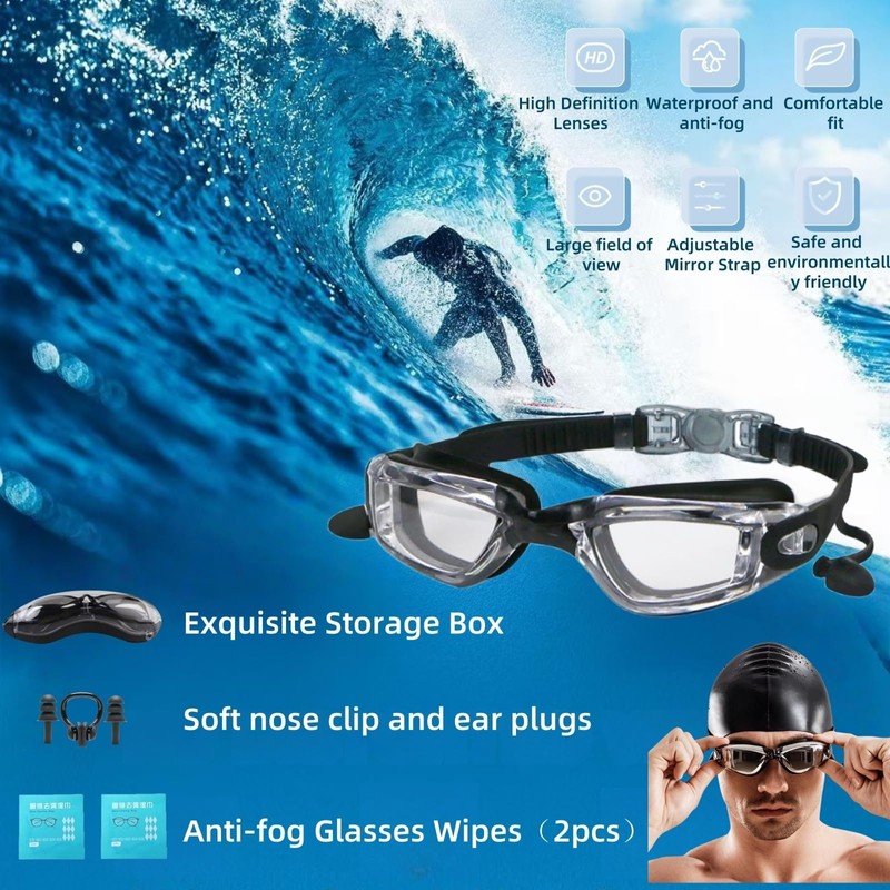 - Product features: Please note that disposable anti-fog paper should only be used if the glasses are not equipped with an anti-fog function. This is to prevent the disposable anti-fog paper from extinguishing the anti-fog coating of the glasses itself. 100% UVA/UVB protection and anti-fog coating (anti-fog). Wide TPR sealing frame (thermoplastic rubber), one-piece swimming goggles with earplugs are less likely to lose earplugs. Embedded clip. High-strength closure, easy to use, not easy to fall off, easy to wear