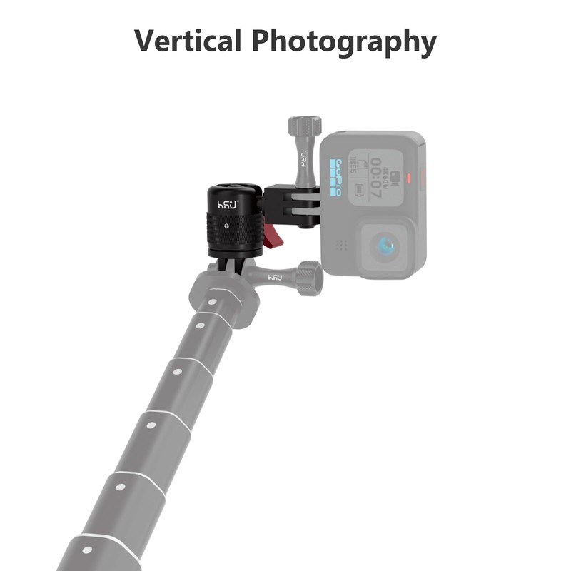 HSU Aluminum Alloy Camera Adapter with 360-degree Horizontal Rotation and 180-degree Vertical Rotation for Hero 12/11/10/9/8/7/6/5/4/3
